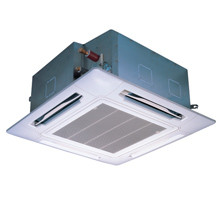 Можно выбрать декоративную лицевую панель с широкими воздушными заслонками или прямыми более узкими заслонками белого или серого цвета. В корпусе кассетного блока имеется отверстие диаметром 100 мм для подмеса свежего уличного воздуха. Дренажная помпа способна поднимать конденсат на высоту до 850 мм.